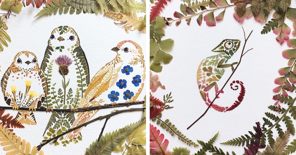 Helen Ahpornsiri è un'artista britannica che realizza delle incredibili opere d'arte utilizzando fiori e foglie pressati. Le sue delicate composizioni raffigurano diverse tipologie di soggetti animali, dai mammiferi agli uccelli, dagli insetti alle creature del mare.