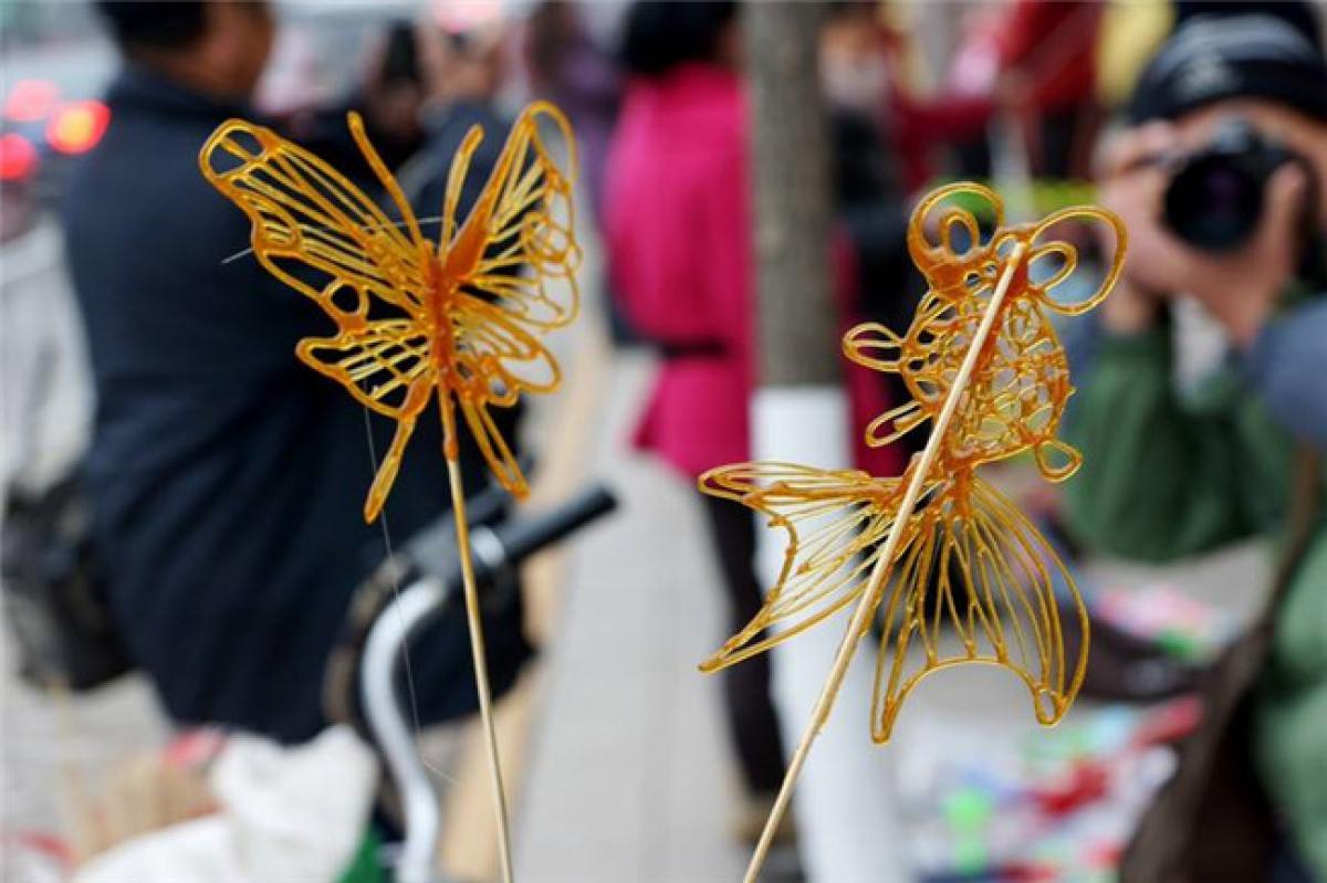 In Cina, passeggiando per le strade, nei parchi e nelle aree turistiche, può capitare frequentemente di imbattersi in artisti intenti a produrre dipinti utilizzando zucchero liquido.