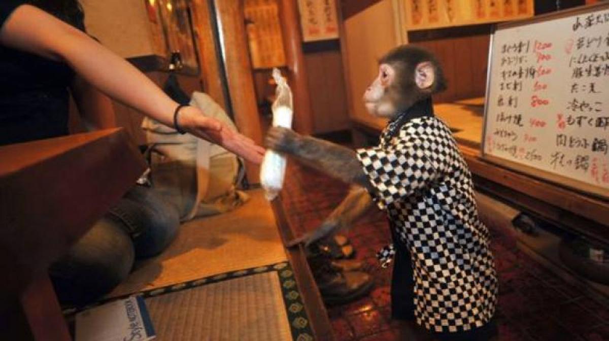 Kayabykiya Tavern è una tradizionale sake-house, situata a Utsunomiya, a nord di Tokyo (Giappone). Il proprietario del locale, Kaoru Otsuka, possiede due macachi, e ha deciso di lasciarsi aiutare da loro nella gestione del locale.