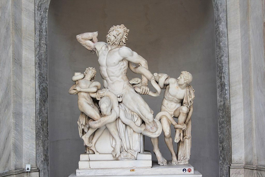 Laocoonte e i suoi figli è un iconico gruppo scultoreo che, oggi, si può ammirare nei Musei Vaticani. Rappresenta una scena decisamente impressionante: dei serpenti marini che stritolano un uomo terrorizzato e i suoi due giovani figli, intenti a lottare invano contro le spire delle creature, nel disperato tentativo di salvarsi la vita.