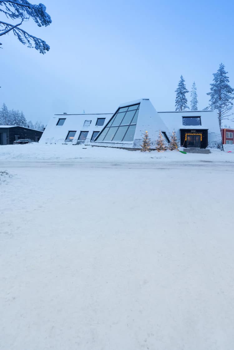 Le ampie porzioni di muri di vetro permettono agli ospiti di immergersi nella foresta finlandese. La forma della costruzioni è ispirata a quelle degli indigeni Sàmi, un gruppo nomade allevatore di renne.