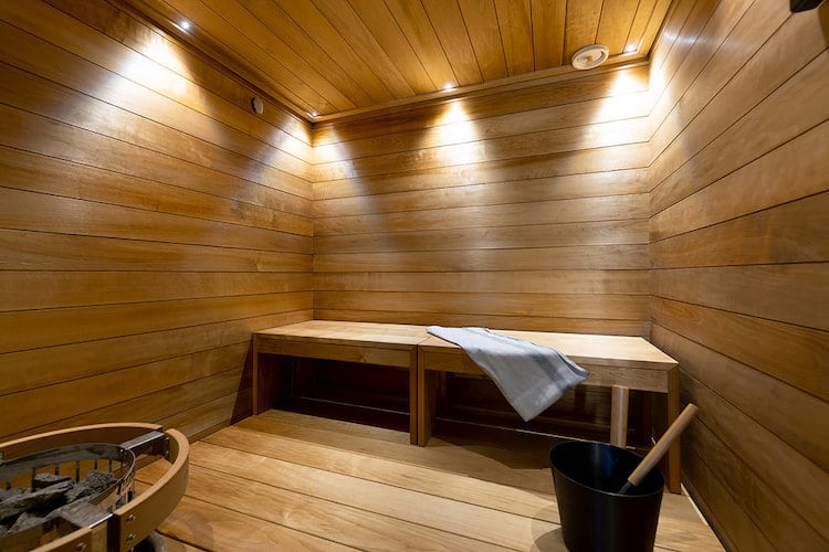 Ogni cabina include un'area abitabile, una piccola cucina, una stanza da letto con vista sul paesaggio e una sauna privata e una jacuzzi all'aperto.