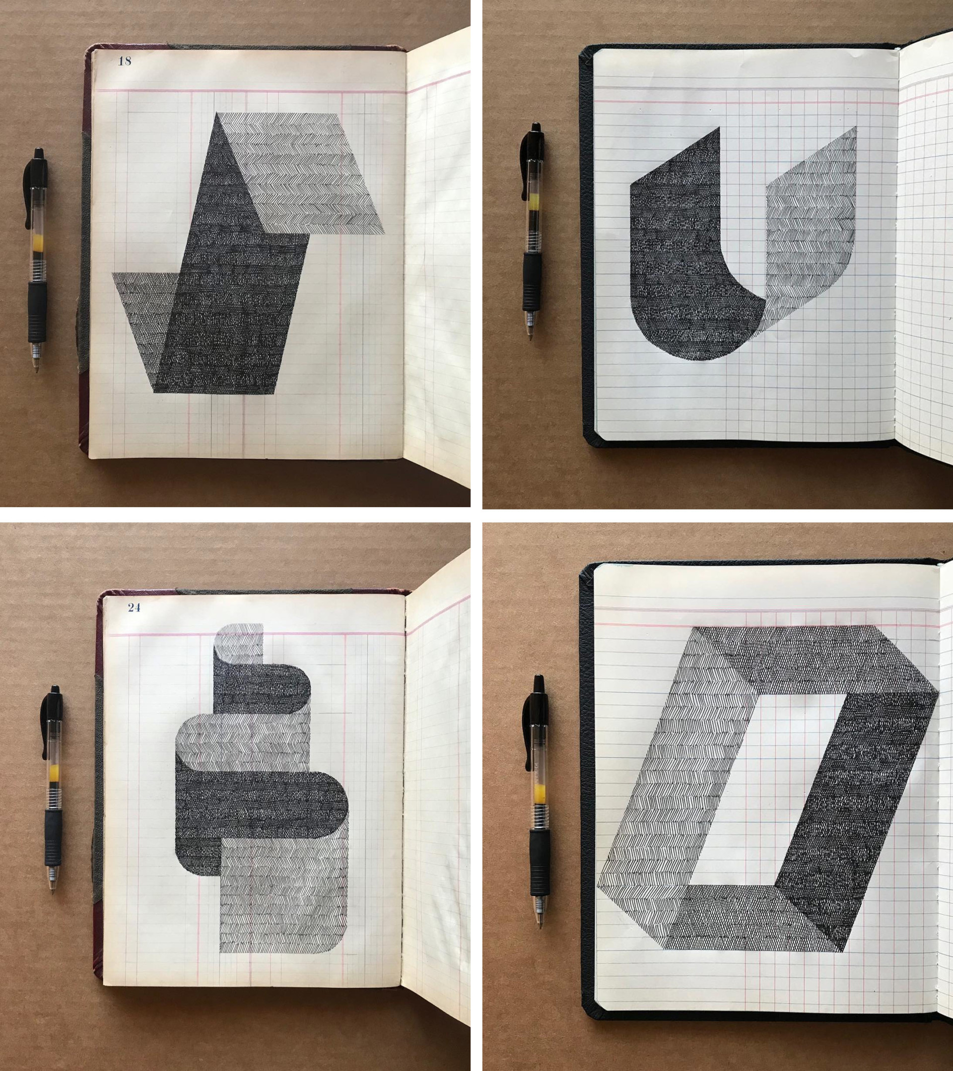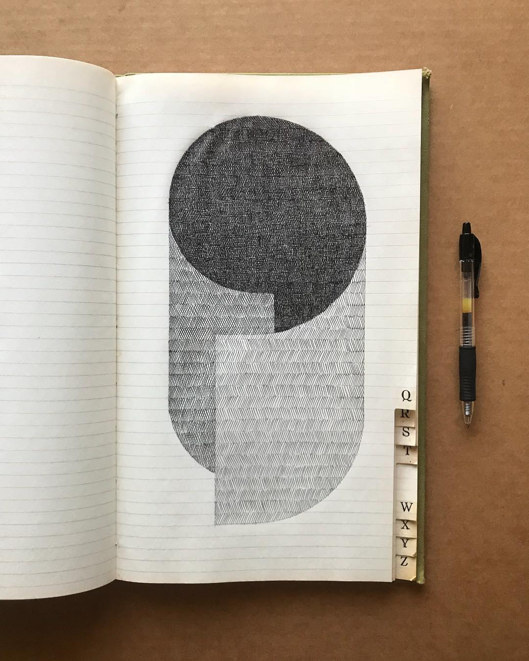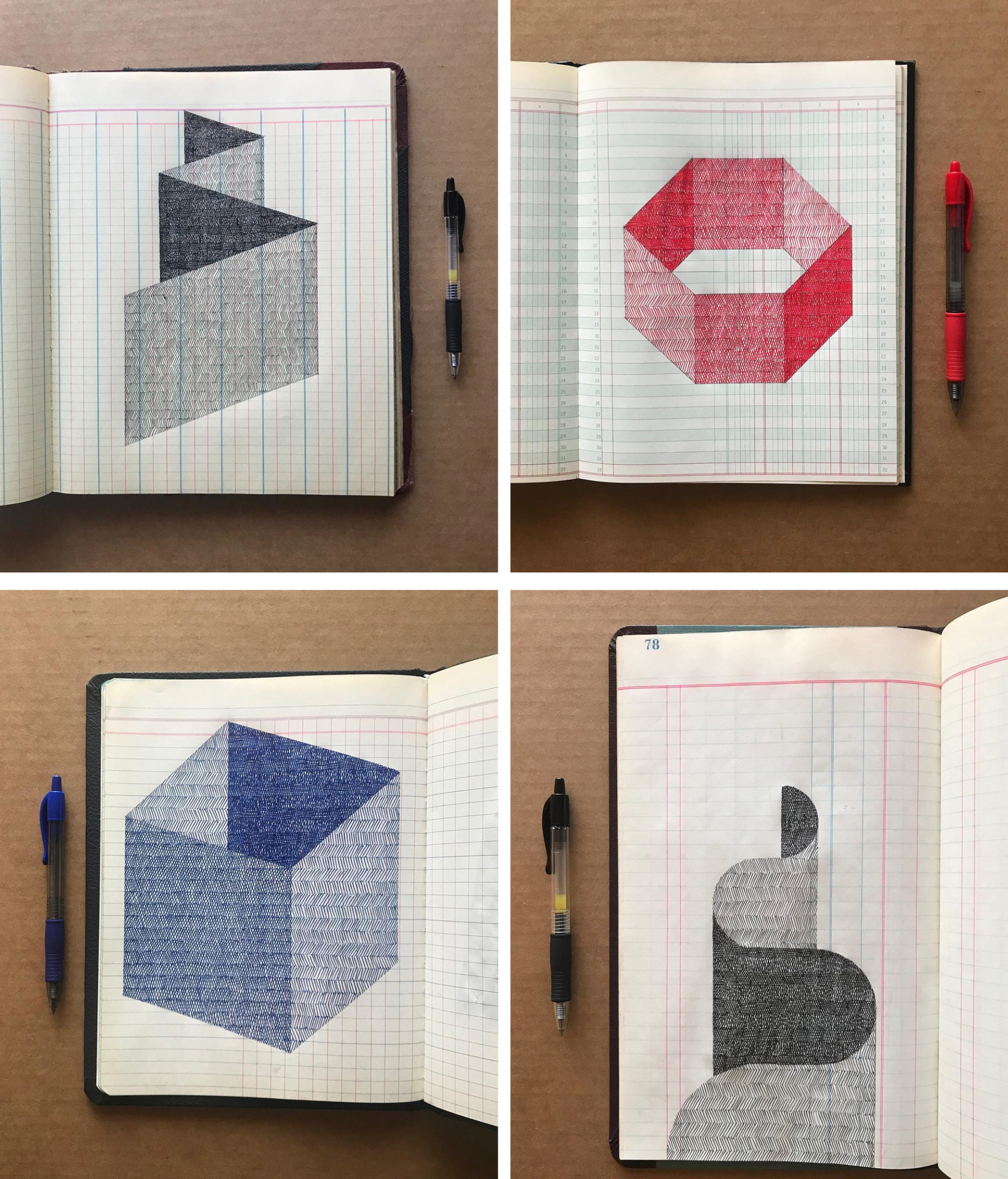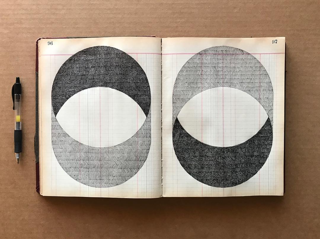 Albert Chamillard studia il modo migliore per disegnare forme geometriche in grado di calmare la mente di chi le guarda. Monocromatici, questi scarabocchi sono disegnati su vecchi libri mastri (gli antichi registri di contabilità).