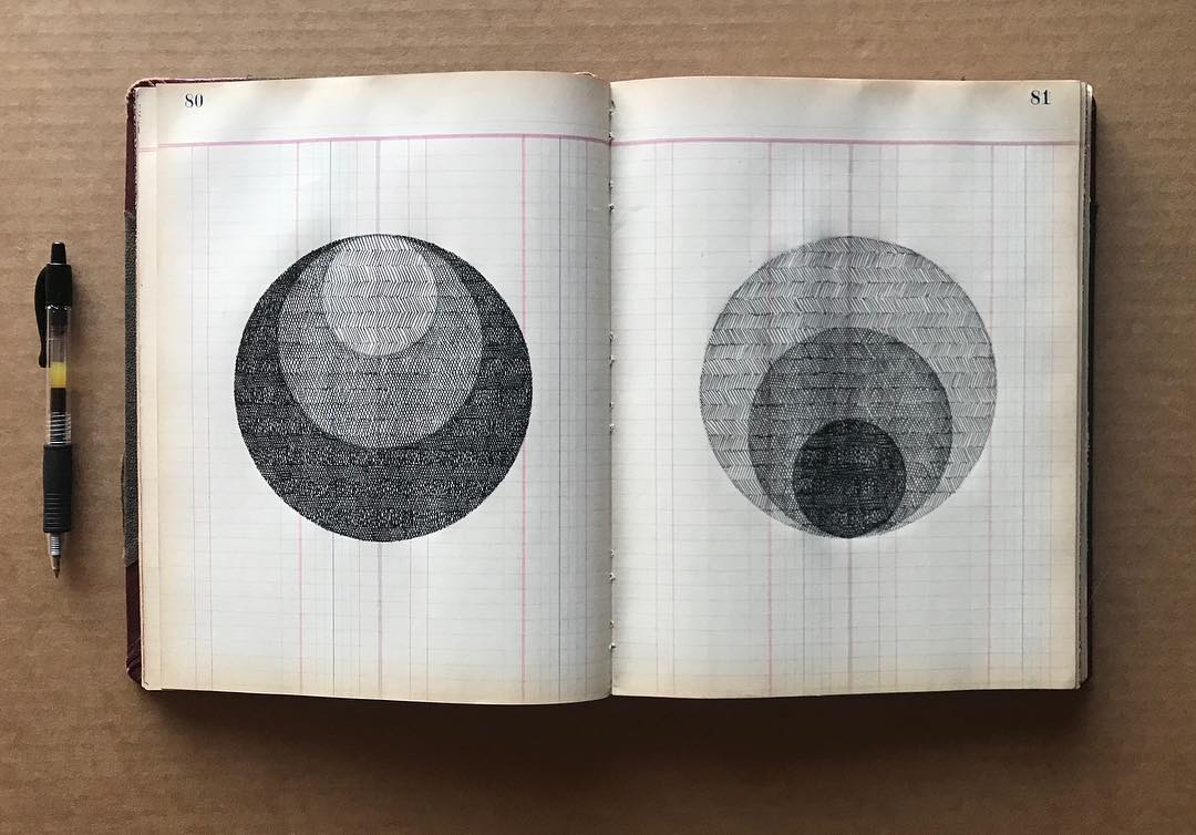 HTMLLe meditative forme geometriche di Albert Chamillard disegnate su vecchi libri mastri
