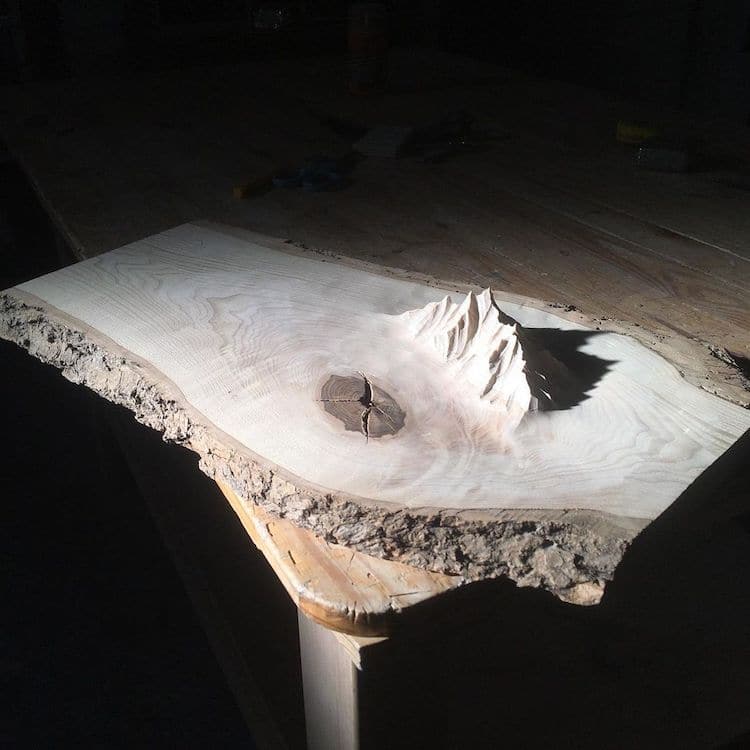 Nella loro sorprendete linea Reliefs, i designer Benoit Vauthier and Manu Lerendu omaggiano i paesaggi mozzafiato di America e Europa portando nelle case la bellezza delle vette di montagna più maestose del mondo. Realizzando tavoli in legno assolutamente unici, attraversano il confine tra arredamento e scultura.